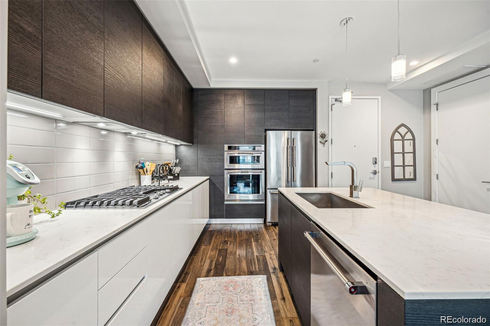 Welcome home to this light and bright, South Facing unit, in one of the most desired buildings in Denver. This one bed, one bath unit boasts quartz countertops, stainless steel appliances and a gas range and convection oven. Enjoy the fresh Colorado air with a sunny balcony with both city and mountain views. Amenities include a massive outdoor terrace, 70-ft Lap pool, year-round hot tub, dry sauna, state of the art fitness center and countless views overlooking Sloan's Lake. Additional amenities include a community garden, a yoga studio, a pet spa and community spaces primed for hosting. This unit also comes with one garage parking space and a storage unit. The Lakehouse shares its streets with numerous other restaurants ranging from fast casual to fine dining, a movie theater and is poised alongside one of the best parks and scenic loops in the metro area, Sloan's Lake. Access to downtown, the Highlands and so much more are mere moments away. This unit provides a near perfect Denver lifestyle that you won't want to miss!